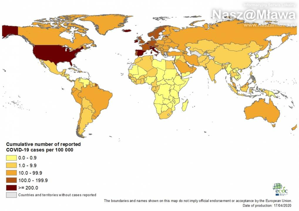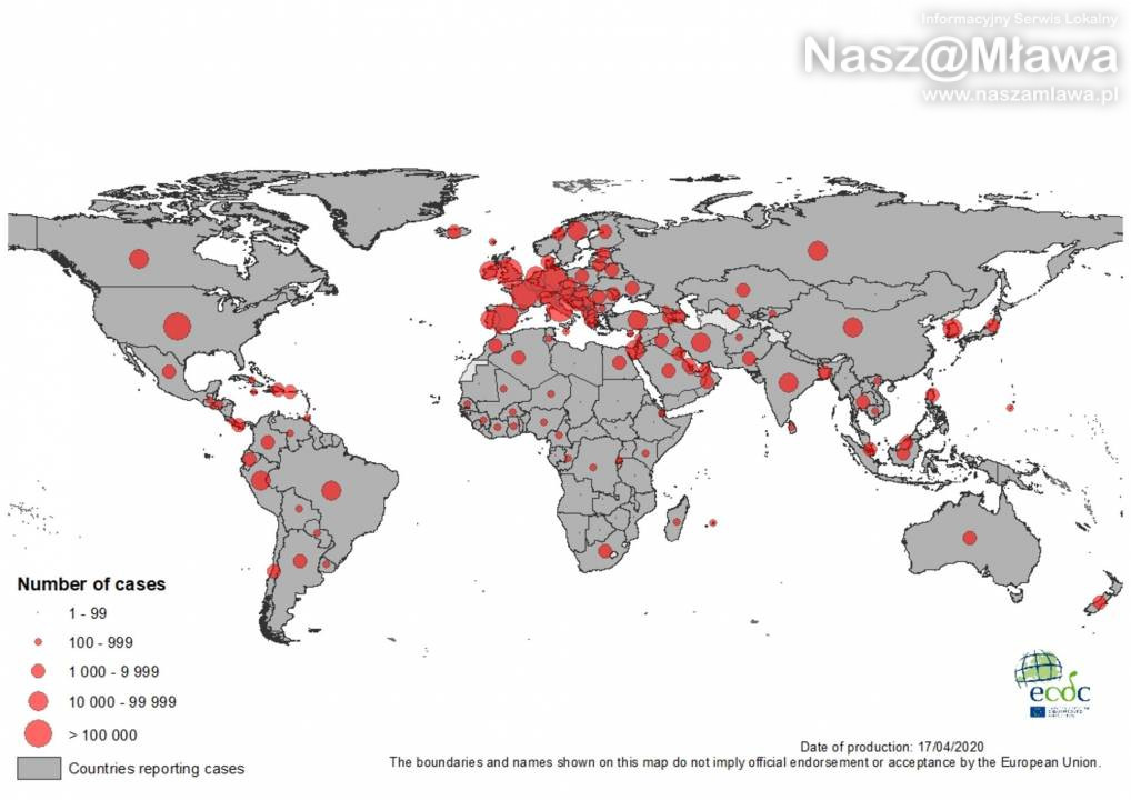 Śmierć nastąpiła w 1005 spośród 9368 (11%) przypadków hospitalizowanych z 21 krajów.