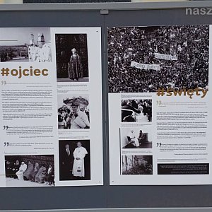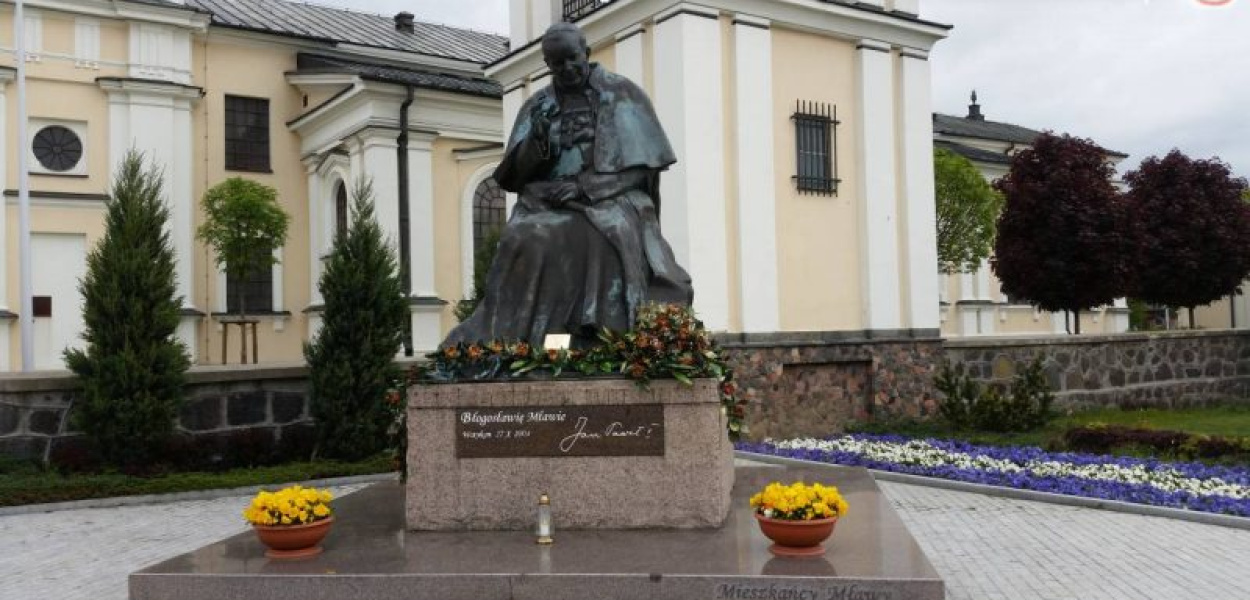 Z okazji 100 urodzin Karola Wojtyły - Papieża Polaka Jana Pawła II, w Mławie przyozdobiono jego pomnik i przed kościołem św. Trójcy postawiono okolicznościową wystawę. Poniżej prezentujemy zdjęcia.Dziś (18 maja) w godzinach 10-18 z głośników przy pomniku emitowane będą ulubione piosenki Karola Wojtyły. Zaplanowano także Mszę Świętą na godzinę 18.00, ale w związku z ograniczeniami spowodowanymi pandemią koronawirusa, może wejść do świątyni i w niej uczestniczyć tylko 100 osób.