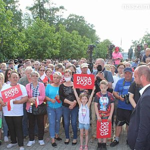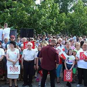 W parku miejskim zebrały się tłumy zwolenników urzędującego prezydenta. Była też niewielka grupa przeciwników, skutecznie zagłuszana przez przychylną urzędującemu prezydentowi większość. Tłum skandował słowa poparcia dla Andrzeja Dudy. Zaczęło się to jeszcze zanim wysiadł z Dudobusu.