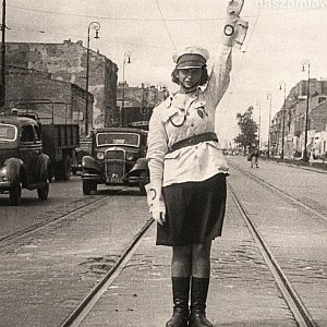 ZA MUNDUREM, ZA KASZĘW kwietniu 1945 r. sąsiad, funkcjonariusz MO, namówił ją, by spróbowała przyjąć się do służby.- Miałam 17 lat, ale powiedziałam, że 18 - śmieje się na to wspomnienie. - Nikt wtedy nie sprawdzał dokładnie papierów. Dostałam zielone umundurowanie, owijacze, podkute buty, furażerkę, chorągiewki zieloną i czerwoną, no i karabin, a później pistolet. Po krótkim przeszkoleniu trafiłam do Kompanii Ruchu Drogowego i na swoje pierwsze skrzyżowanie na rogu ulic Targowej i Wileńskiej. W tamtym okresie byliśmy skoszarowani na Bednarskiej, a całą naszą gażą był deputat żywnościowy, głównie kasza gryczana i śledzie.Kiedy pani Leokadia zaczynała służbę, o korkach nikt jeszcze w zrujnowanej Warszawie nie słyszał, co jednak nie oznaczało, że pracowało się lekko. Ona i kilka innych koleżanek na równi z mężczyznami musiały odstać na skrzyżowaniu 8 godzin, niezależnie od pogody.- Stałyśmy po dwie, zmieniając się, godzina na środku skrzyżowania i godzina z boku, na chodniku, ale kiedyś koleżanka nie przyszła i musiałam sama stać 16 godzin - mówi pani Leokadia. - Dostałam w nagrodę 3 dni urlopu.Mimo niewielkiego ruchu dochodziło do tragicznych w skutkach wypadków z udziałem regulujących ruch milicjantów i milicjantek. Irenę Małecką, koleżankę pani Leokadii z KRD, śmiertelnie potrąciła ciężarówka.- Ja też zostałam potrącona, ale niegroźnie - mówi. - Były też i inne niebezpieczeństwa. Koleżankę Janinę Krzemińską zabito, kiedy wracała po służbie. Zabrano jej pistolet. Do mnie i koleżanki ktoś strzelał, kiedy stałyśmy na pl. Trzech Krzyży. Schowałyśmy się do budki strażniczej na pobliskiej budowie. Wtedy w Warszawie przestępczość była naprawdę ogromna. Innym razem wyskoczył do mnie z korbą rosyjski kierowca, którego chciałam ukarać. Obezwładnili go ludzie, wrzucili na pakę i zawieźli do komendy, a przełożeni potem pytali mnie, co on mi chciał zrobić, że go tak urządziłam.Z czasem sytuacja w mieście zaczęła się powoli normalizować. Kompania została rozkoszarowana, funkcjonariusze mogli zamieszkać we własnych domach. Pani Leokadii przydzielano służbę na coraz to nowych skrzyżowaniach.- Stałam m.in. na rogach: Krakowskiego Przedmieścia i Karowej oraz Al. Jerozolimskich z Nowym Światem, Marszałkowską, Żelazną, Towarową, a także na Krakowskim Przedmieściu przy pomniku Kopernika - mówi. - Musiałam sama po służbie nieść do jednostki podest, na którym stałam, czasem pomagali mi kierowcy, których o pomoc poprosiłam.