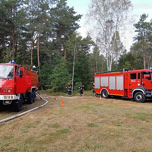 .Scenariusz ćwiczeńZakładał pożar terenu leśnego, będącego prawdopodobnie wynikiem podpalenia. Do zdarzenia dysponowane są siły i środki Kompanii Gaśniczej "Mława" Wojewódzkiego Odwodu Operacyjnego oraz służby leśne. Ze względu na panującą suszę oraz awarię pobliskich wodociągów najbliższym źródłem przeciwpożarowego zaopatrzenia wodnego jest naturalny zbiornik wodny znajdujący się w odległości ok. 2 km od miejsca pożaru. W związku z rozwojem pożaru służby leśne wykonują pasy przeciwpożarowe ograniczające rozwój pożaru. Strażacy powiatu mławskiego przystępują do gaszenia pożaru oraz budują punkt czerpania wody. Woda będzie dostarczana pompą wysokiej wydajności M 100/8 Bocar z JRG Mława z wykorzystaniem linii wężowej W110, a dalej dowożona do stanowisk gaśniczych na odcinku ok. 1,5 km z wykorzystaniem pojazdów kompanii.Z uwagi na stosunkowo długi czas niezbędny do realizacji zaopatrzenia wodnego, na miejsce pożaru dysponowany jest przez administrację Lasów Państwowych (Nadleśnictwo Przasnysz) samolot gaśniczy, który po rozpoznaniu lotniczym dokonuje zrzutu wody celem uniemożliwienia przerwania linii obrony.Po zorganizowaniu zaopatrzenia wodnego woda jest dostarczana do stanowisk gaśniczych. W trakcie gaszenia pożaru awarii uległa pompa dużej wydajności. Woda do placu manewrowego była alternatywnie dostarczana za pomocą autopomp z samochodów gaśniczych.Ćwiczenia były doskonałą okazją dla ćwiczących do zweryfikowania swoich umiejętności i możliwości w konfrontacji z realnym zagrożeniem pożaru kompleksu leśnego.W tym: sprawdzenie skuteczności systemu alarmowania pododdziałów MBO;