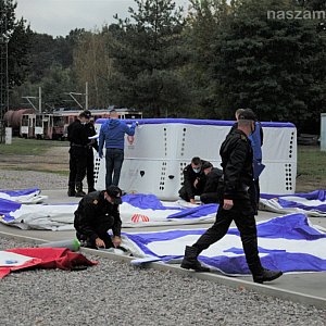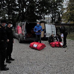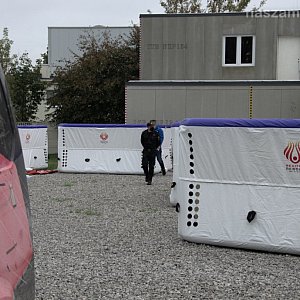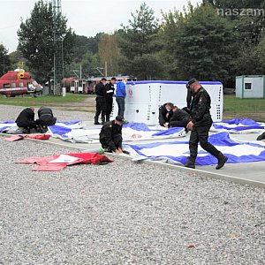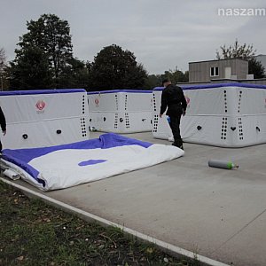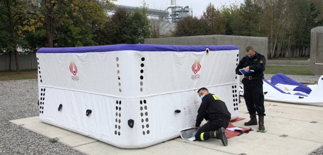 w Warszawie.Skokochron pneumatyczny, który trafił do mławskiej jednostki, przeznaczony jest do ewakuacji ludzi z miejsc zagrożenia, w szczególności z wyższych kondygnacji, podczas płonących budynków, w sytuacji gdy dotarcie pojazdu ratowniczego na miejsce akcji jest utrudnione lub wręcz niemożliwe.Pozyskany skokochron pneumatyczny charakteryzuje się szybkiego przygotowania do działań ratowniczych i łatwą obsługą. Rozkłada się samoczynnie po otwarciu butli ze sprężonym powietrzem, która jest na wyposażeniu. Powierzchnia zeskoku pozwala na skok z wysokości 16 metrów. Dzięki zastosowanym odpowiednim materiałom można stosować go przy temperaturach w przedziale od -30º do +50º C, powłoka zewnętrzna wykonana została z niepalnego materiału, odpornego na rozdarcie oraz działanie szkodliwych warunków atmosferycznych takich jak deszcz czy śnieg. Ze względów na niską wagę, rozłożenie jak i przenoszenie skokochronu może być wykonywane przez 2 osoby.Skokochron został już przyjęty na wyposażenie Jednostki Ratowniczo-Gaśniczej w Mławie, w której będzie służył przez kolejne 15 lat.Realizacja przedsięwzięcia została zainicjowana przez Mazowieckiego Komendanta Wojewódzkiego PSP w związku z przeprowadzoną analizą, której głównymi założeniami były m.in.: