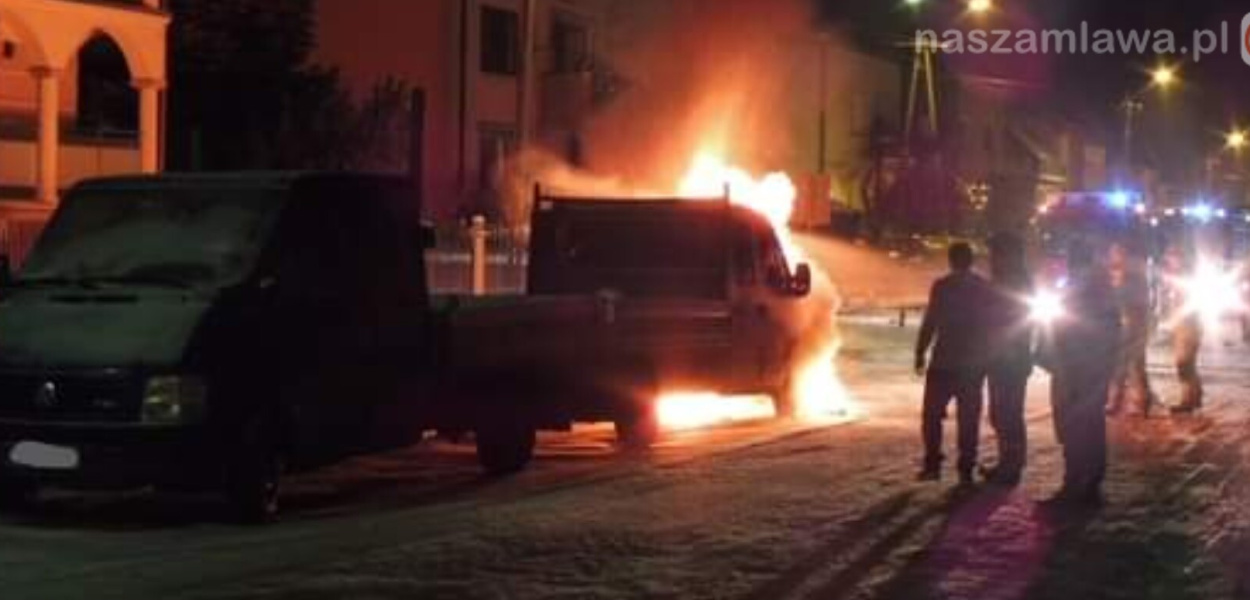 Płonący bus w Mławie - FOTOREPORTAŻ