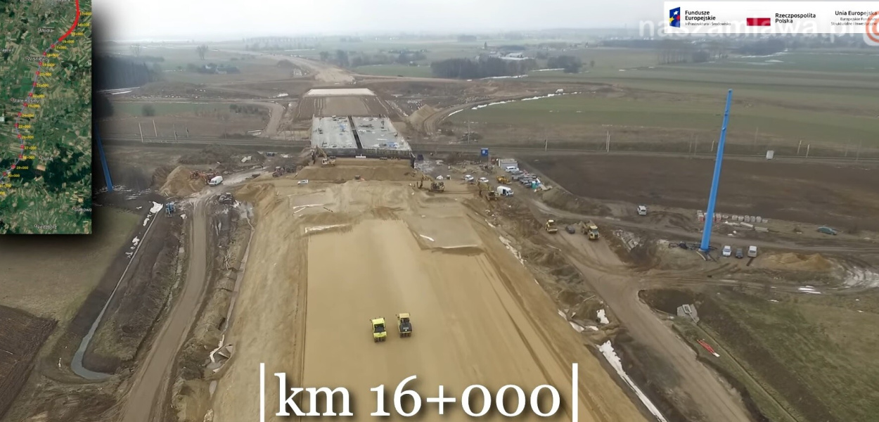 Drogowcy udostępnili kolejny film z inspekcji wizualnej budowy drogi S7. Tym razem na odcinku Mława-Strzegowo. W półgodzinnym nagraniu z lotu ptaka oglądamy odcinek budowy od 14 do 36 kilometra. Prace są w bardzo różnym stopniu zaawansowania. Widać, że większość budowli betonowych takich jak wiadukty i przepusty już powstało. Obecnie wykonywane są dojazdy do nich.Prace koncentrują się w kilku miejscach np. przy budowie wiaduktu nad torami kolejowymi relacji Warszawa-Gdańsk. Budowa samego pasa drogowego w niektórych miejscach wymaga jeszcze wiele pracy, bo stoi na niej woda. W innych wyraźnie widać już obie jezdnie i układane poszczególne warstwy podbudowy. Same węzły drogowe w Mławie i Strzegowie również zaczynają wyłaniać się z ziemi, ale jest jeszcze na nich stosunkowo dużo pracyPrace w okresie zimy i wczesnej wiosny były znacznie spowolnione najpierw z powodu pokrywy śnieżnej, a później z powodu nasiąkniętej wodą pochodzącą z roztopów ziemi, która utrudniała prace gruntowe. Oddanie do użytku tego odcinka drogi krajowej S7 planowane jest na obecny 2021 rok i obecnie nie jest planowane przesunięcie tego terminu.