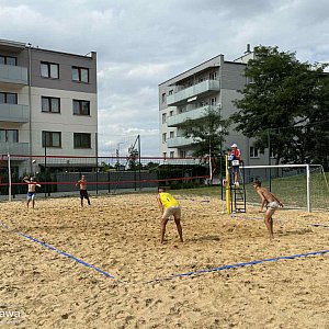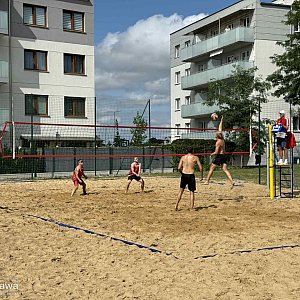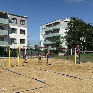 Koniec wakacji przyniósł siatkarskie emocje w naszym mieście. W turnieju organizowanym na piaszczystych boiskach przy Mławskiej Hali Sportowej rywalizowało jedenaście duetów. Sponsorem nagród była firma sprzątająca „Błysk”.
