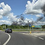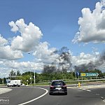 Kłęby czarnego dymu nad Mławą. Kilkudziesięciu strażaków z kilkunastu zastępów straży walczyło z pożarem.