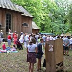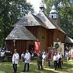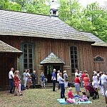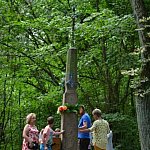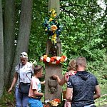 Ludzie podchodzą do obelisku z krzyżem, okrążają go trzy razy. Potem idą do pobliskiego źródełka. Klękają, przemywają wodą oczy,