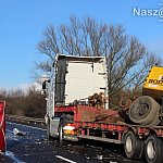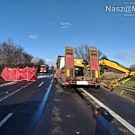 W dalszym ciągu trwa akcja podniesienia koparki. "Siódemka" jest całkowicie zablokowana. Do zdarzenia doszło dziś na drodze krajowej nr
