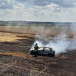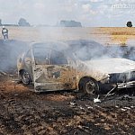 Uprawy i samochód w ogniu (ZDJĘCIA)