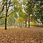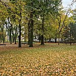 Takie klimaty. Mławski park w jesiennych liściach. Tak było jeszcze we wtorek. Dziś i jutro silnie wiejący wiatr zwieje pozostałe liście
