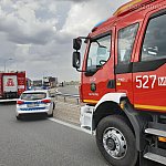 Służby gasiły pożar samochodu ciężarowego przy zjeździe z drogi ekspresowej nr 7 na wysokości miejscowości Dunaj w powiecie mławskim.