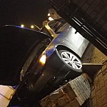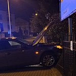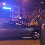 19-latek za kierownicą BMW przeleciał przez rondo na Warszawskiej w Mławie i wbił się w ogrodzenie posesji.Przeleciał przez rondo i wbił