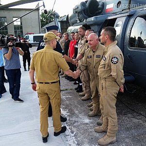 Około 21.00 czasu polskiego 11-osobowa grupa składająca się z czterech policyjnych pilotów, czterech mechaników pokładowych oraz trzech strażaków znajdujących się na pokładzie policyjnego śmigłowca wróciła do Warszawy. Za kilkanaście godzin do kraju wróci także drogą lądową trzech pozostałych funkcjonariuszy PSP, którzy wspólnie z kolegami przez ostatnie dni pomagali w Turcji walczyć z żywiołem.Na płycie lotniska przywitali ich: Komendant Główny Państwowej Straży Pożarnej nadbryg. Andrzej Bartkowiak oraz Zastępca Komendanta Głównego Policji nadinsp. Roman Kuster.- Stworzyliście jeden dobry zespół policjantów i strażaków. Pan naczelnik dotrzymał słowa. Wróciliście cali i zdrowi. Wiem, że jesteście teraz zmęczeni. W imieniu Komendanta Głównego Policji gen. insp. Jaroslawa Szymczyka chylę przed Wami czoło i bardzo Wam dziękuję - powiedział Zastępca Komendanta Głównego Policji nadinsp. Roman Kuster.- Jestem zbudowany Waszym działaniem. Każdego dnia, każdej godziny śledziliśmy Wasze zmagania. Jestem pełen podziwu dla Waszej pracy. To pierwsza taka wspólna misja. Napisaliśmy pewną nową historię, jeśli chodzi o współpracę polskiej Policji i Państwowej Straży Pożarnej. To była niezwykła współpraca zakończona sukcesem. Zastaliście tam sytuację bardzo trudną a zostawiliście sytuację pożarowo ogarniętą. Bardzo Wam za to dziękuję - dodał Komendant Główny Państwowej Straży Pożarnej nadbryg. Andrzej Bartkowiak.Każdego dnia po odprawie z tureckimi ratownikami z lotniska Dalaman startował policyjny Black Hawk, którym dwa zespoły na zmianę od rana do późnego wieczora prowadziły akcje gaśnicze. Polscy ratownicy mieli do dyspozycji dwa specjalne zbiorniki na wodę, tzw. Bambi Bucket, jeden o pojemności 1,5 tys. litrów, drugi - 3 tys. litrów. Z uwagi na rozmiar pożarów to właśnie z wykorzystaniem tego większego wykonywano zrzuty wody na płonące lasy. Ich liczba uzależniona była od odległości pożaru od źródeł wody. Wodę pobierali najczęściej ze specjalnie przygotowanych do tego celu zbiorników. Łącznie w ciągu 7 dni dokonali 214 zrzutów, czyli ponad 640 ton wody, w miejsca, które precyzyjnie wskazywał będący na pokładzie razem z nimi turecki koordynator.Do ich zadań należało nie tylko gaszenie czy też dogaszanie pożarów. Ich zadania zostały również poszerzone o wykonywanie lotów patrolowych i wyszukiwanie aktywnych pożarów w kolejnych strefach. Jak podkreślają nasi lotnicy, była to bardzo wymagająca misja, ale pozwalająca zdobyć olbrzymie doświadczenie lotnicze. - Wysoka temperatura, przekraczająca 40 stopni Celsjusza, dym, który ograniczał widoczność, duże prądy powietrza utrudniały akcje - mówi insp. pil. Robert Sitek, naczelnik Zarządu Lotnictwa Policji Głównego Sztabu Policji KGP, jeden z pilotów biorących udział w misji. - W większości przypadków akcje realizowane przez nas były jedynym możliwym sposobem ugaszenia pożaru lasów w rejonach górzystych, do których wozy strażackie nie były w stanie dotrzeć. Poza tym liczba innych maszyn w powietrzu, zaangażowanych w działania gaśnicze w rejonie, wymagała od nas dużej ostrożności - dodaje insp. pil. Robert Sitek.W zmaganiach z pożarem tureckich strażaków wspierały także ekipy z Chorwacji, Hiszpanii, Ukrainy, Rosji, Azerbejdżanu i Iranu. Jak podają tureckie władze, w działaniach gaśniczych brało udział dziennie nawet ponad 5 tys. osób, które wykorzystywały ponad 1000 wozów strażackich i innego rodzaju specjalistycznego sprzętu, 9 samolotów oraz 66 helikopterów. Dzięki zaangażowaniu i pomocy tak wielu grup z różnych państw, w tym policyjnych lotników i strażaków z Polski, sytuacja powoli stabilizuje się.Z wielkim smutkiem przyjęliśmy wiadomość o katastrofie w Turcji rosyjskiego samolotu gaśniczego Be-200, w której zginęło pięciu Rosjan i trzech obywateli Turcji, z którymi współdziałali polscy piloci. Składamy szczere kondolencje rodzinom ofiar. Źródło: policja.pl