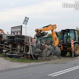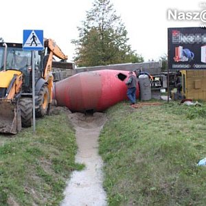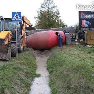 O tym zdarzeniu powiadomił nas czytelnik. Pod Ciechanowem, w Chruszczewie, samochód z gruszką z betonem nie wyrobił się na łuku drogi i przewrócił się na bok. Na szczęście nikomu nic się nie stało. Droga była przejezdna, mimo że wybieranie betonu z rowu trwało kilka godzin.Dziękujemy czytelnikom za przesłane zdjęcia.