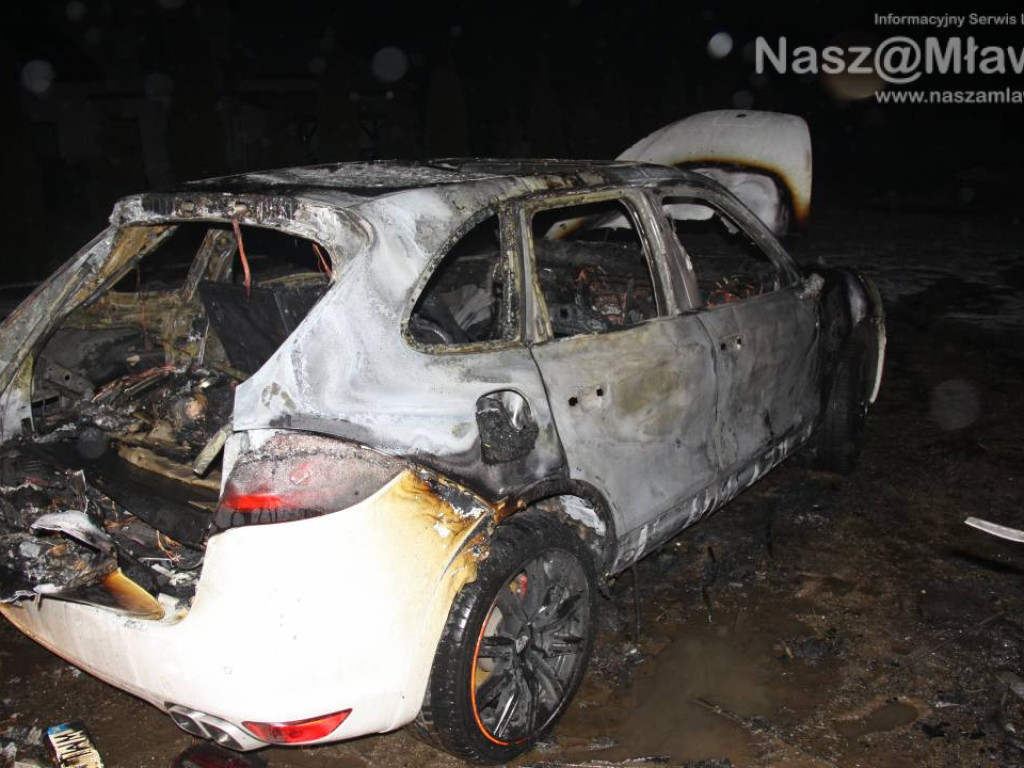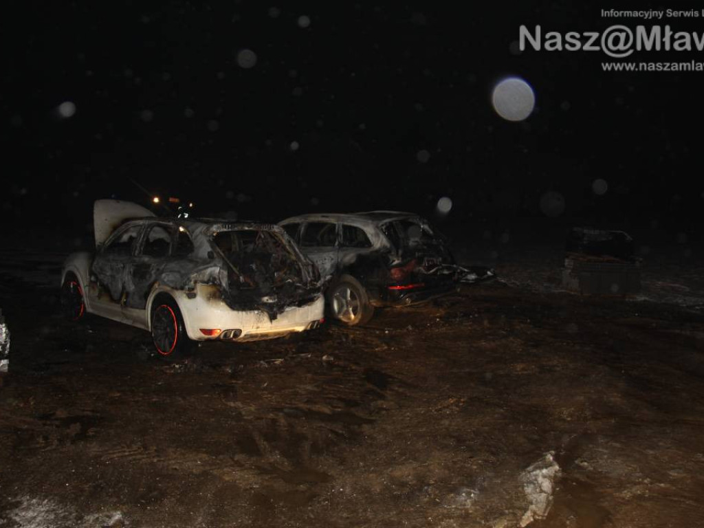 Dziś (7 grudnia) w nocy, około godziny 2 w rejonie prywatnej posesji w Szydłowie nieznani sprawcy podpalili samochody marki Audi Q7 i Porsche Cayenne. Jak informuje policja spowodowali straty na łączną kwotę ponad 250 tys. zł. Postępowanie prowadzi KPP w Mławie.