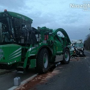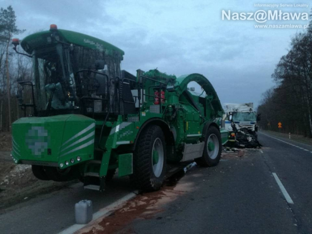 - Rębak, którym kierował 23-latek z pow. starogardzkiego jechał od skrzyżowania w kierunku Płońska. W pewnym momencie w tył maszyny uderzył tir z naczepa, kierowany przez 36-letniego płońszczanina. Mężczyzna z obrażeniami ciała został przewieziony do szpitala. Na szczęście doznał jedynie ogólnych potłuczeń ciała.Obaj kierujący byli trzeźwi, jednak wstępne badania krwi wykazały, że kierowca tira prawdopodobnie znajdował się pod wpływem narkotyków - amfetaminy. Pobrano od niego krew do dalszych badań - informuje podkom. Kinga Drężek-Zmysłowska z KPP w Płońsku.