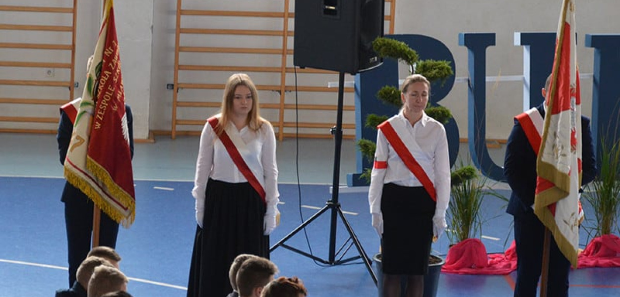 Mławska "budowlanka" w piątek 4 października została obdarowana 27-letnim sztandarem działającej w Mławie organizacji kombatanckiej. Teraz ma go strzec i kultywować związane z nim tradycje.Tegoroczne święto patrona szkoły w Zespole Szkół nr 1 w Mławie, czyli w "budowlance", miało wyjątkowy przebieg, o czym mówi dyrektor Urszula Makowska.Najpierw ślubowanie na sztandar szkoły złożyli uczniowie klas pierwszych.Historię sztandaru Związku Żołnierzy Armii Krajowej, Narodowych Sił Zbrojnych i Związku Więźniów Politycznych oraz powód jego przekazania szkole przedstawił żołnierz niezłomny Tadeusz Jasiński.Sztandar, w imieniu Zarządu Światowego Związku Żołnierzy Armii Krajowej obwód w Mławie, przekazali delegaci a zarazem żołnierze niezłomni Irena Polakowska i Tadeusz Jasiński..