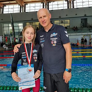 Basen na warszawskim Żoliborzu był areną tegorocznej edycji międzywojewódzkich mistrzostw młodzików. Uczestnicy zmagań wywodzili się w komplecie z terenu Mazowsza. Wśród nich nie zabrakło reprezentantów Marlina Mława.Trener Tomasz Szczepański zabrał ze sobą siedmioro swoich podopiecznych - urodzonych w 2012 roku. Wszyscy walczyli z ogromną energią, nie odpuszczając do końca. Wierzyli, że uda się osiągnąć jak najlepszy wynik. Wiara plus umiejętności przyniosła w paru sytuacjach odpowiednie rezultaty.Na podium prestiżowej imprezy stanęła Nadia Florczak. Na 100 metrów stylem klasycznym sięgnęła po srebrny krążek. Walkę o drugą lokatę wygrała z Michaliną Ługowoj z Piaseczna o cztery setne sekundy. Złoto zgarnęła Emilia Płoskonka z G-8 Bielany Warszawa. Warto dodać, że do rywalizacji na tym dystansie zgłosiły aż sześćdziesiąt dwie zawodniczki.Na dwieście metrów stylem klasycznym Florczak była bliska kolejnego lauru. Ostatecznie musiała się zadowolić najgorszą lokatą dla każdego sportowca niezależnie od wieku czyli czwartą.Ponadto do pierwszej "dziesiątki" przedarły się jeszcze dwie mławianki. Na ósmej pozycji w wyścigu na 100 metrów stylem grzbietowym finiszowała Amelia Stemplińska. Tuż za koleżanką klubową w tym samym biegu dopłynęła do mety Natalia Lee.W Warszawie nie zabrakło także rekordów życiowych. Dokładne wyniki międzywojewódzkiego czempionatu możne prześledzić na stronie https://www.swimrankings.net/index.php?page=meetDetail&meetId=646309&clubId=71661Fot: Marlin Mława