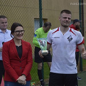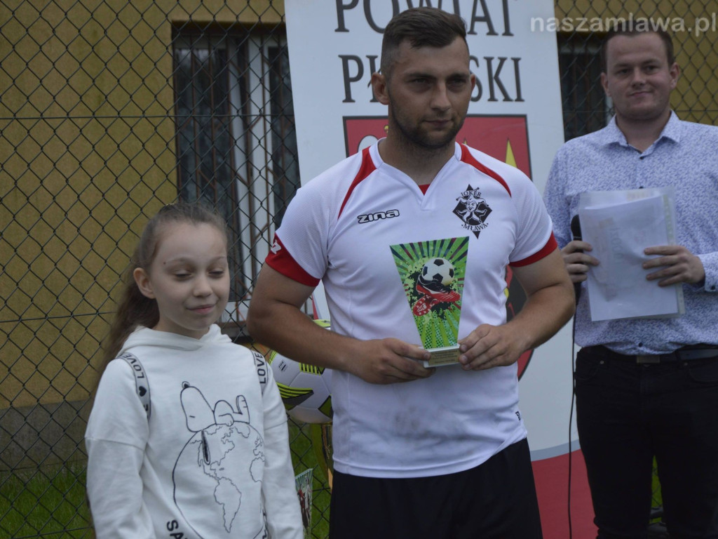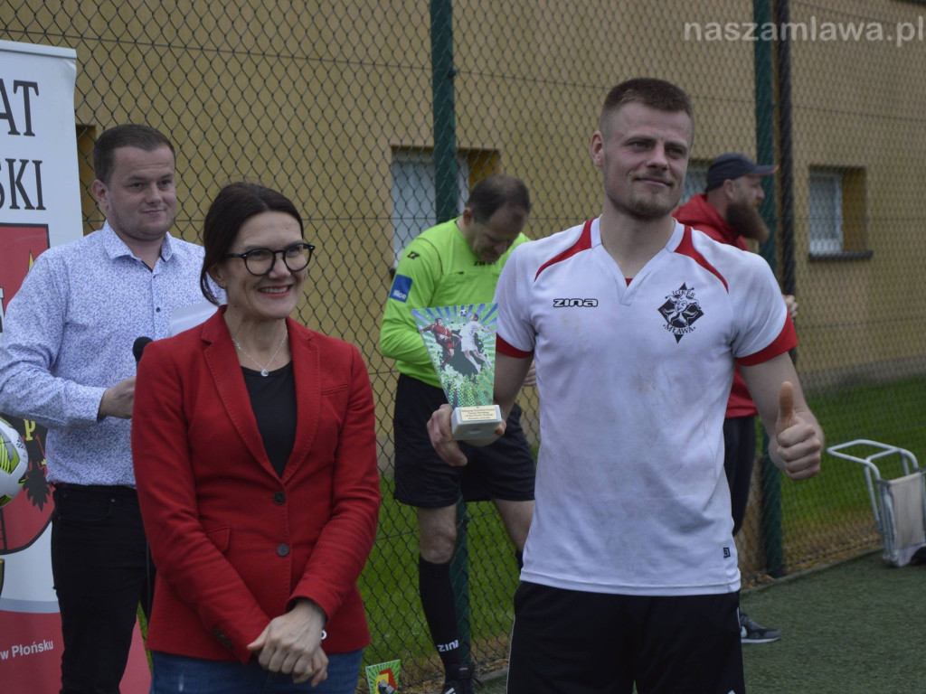 Piłkarze mławskiego Jokera polubili wyprawy do powiatu płońskiego Na początku maja zajęli drugie miejsce w finale premierowej edycji imprezy o nazwie GrajzKrystianem Cup. Ten wynik powtórzyli w zawodach o puchar starosty Elżbiety Wiśniewskiej rozegranych w Płońsku.Przełknęli gorycz dwóch porażek - za każdym razem musieli uznać wyższość konkurentów z Glinojecka. W przypadku pierwszej wpadki nie miało to żadnego znaczenia dla losów naszej ekipy. Poniesiona w eliminacjach nie zamknęła drzwi do fazy pucharowej. W kolejnych grupowych starciach pojawiły się już na koncie punkty.FC Pesto przegrało 0:1 - kapitalne podanie od Kamila Bartkowskiego wykorzystał Zbigniew Krystkiewicz. Oldboye Baboszewo polegli 1:3 za sprawą dubletu Przemysława Radziszewskiego i celnego strzału Konrada Różyckiego. Natomiast w konfrontacji z Wczorajszymi Joker urządził sobie strzelecki trening (zwycięstwo 6:1). Pół tuzina trafień rozłożyło się na trzech graczy: Różyckiego (3), Bartkowskiego (2) oraz Zbigniewa Krystkiewicza.Jeszcze efektowniejszy triumf przyszedł w półfinale. Bramkarz płońskiego Tynkpol skapitulował aż dziewięciokrotnie (triumf 9:1). Pięć goli strzelił Różycki, dwie Zbigniew Krystkiewicz, po jednym dołożyli Radziszewski i Bartkowski.To pozwoliło awansować do decydującego pojedynku. Niestety w finałowym starciu Joker trafił ponownie na konkurentów z Glinojecka. Zaczął fatalnie, po kilku minutach przegrywał 0:3. Zryw w końcówce nie pomógł. Pozwolił zmniejszyć jedynie rozmiary przegranej do 2:3.Drugie miejsce to nie wszystko. Konrad Różycki sięgnął po koronę króla strzelców (9 trafień na koncie). Natomiast statuetkę dla najlepszego zawodnika drużyny otrzymał Przemysław Radziszewski. Z kolei pozostałe nagrody indywidualne przypadły Szymonowi Zawadzkiemu (Glinojeck - najlepszy piłkarz) oraz Szymonowi Skale (Czarki Przasnysz - najlepszy bramkarz).Joker zagrał w turnieju w składzie: Z. Krystkiewicz, J. Krystkiewicz, K. Różycki, P. Radziszewski, S. Grablewski, T. Oleszkiewicz, K. BartkowskiFot: Martyna Rucka