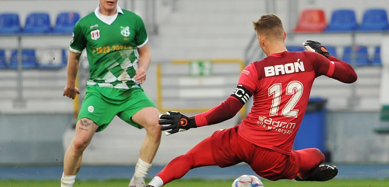 Kapitalna seria pięciu zwycięstw z rzędu wywindowała Mławiankę na fotel lidera trzeciej ligi. Dotychczas przodownik Pogoń Grodzisk poległ na swoim boisku z outsiderem z Elbląga. Wykorzystali to mławianie, świętując wyjazdowy sukces w Radomiu.Najlepiej w rywalizacji z Bronią czuł się Michał Stryjewski. W przeszłości już strzelał bramki na stadionie w Radomiu im. Marszałka Józefa Piłsudskiego. Przed pięcioma lat Mławianka pokonał 2:1 radomian w rozgrywkach Pucharu Polski na szczeblu wojewódzkim. Do siatki trafili Daniel Samluk oraz w 84. minucie starszy z braci Stryjewskich. Tamto spotkanie obok Michała pamięta jeszcze Maciej Rogalski (obaj wybiegli w wyjściowym składzie).Wracając do obecnej rywalizacji trener Piotr Rzepka nie mógł skorzystać w sobotnie popołudnie z usług Mateusza Sobotki. Młody pomocnik narzeka na kontuzję stawu skokowego. Otrzymał czas na wyleczenie urazu. W ten sposób do wyjściowego składu po raz pierwszy wskoczył Mateusz Karol.Piorunujący początekMławianie zaczęli wyjazdowy bój w imponującym stylu. Po dwunastu minutach prowadzili już 2:0. Wynik otworzył Michał Stryjewski. Przymierzył z całej siły pod poprzeczkę. Potem cieszył się jego brat. Uderzenie Mateusza wylądowało idealnie tuz obok słupka.Gospodarze przebudzili się po trzydziestu minutach. Piotr Piotrowski wybronił jeszcze uderzenie Jamajczyka Xahne-Georgio Reid. Niestety kolejne akcje przyniosły zespołowi z Radomia już powodzenie. Kontaktowy gol zdobył Kamil Odolak, a wyrównał uderzeniem z dystansu Michał Kielak.Czerwień i hat-trickNa szczęście po zmianie stron strzelali już tylko reprezentanci naszego klubu. W ofensywie szalał Michał Stryjewski. W 48. minucie popisał się celną "główką" po dośrodkowaniu swojego brata. Potem wyrzucił z boiska obrońcę Broni. Zagranie Jakuba Tworka sprawiło, że wychowanek Mławianki wychodził na czystą pozycję. Przed sobą miał już tylko bramkarza. Kajetan Jendryczko powalił popularnego "Stryja" na murawę - kara musiała być jedna, czerwona kartka.Podopieczni Rzepki wykorzystali osłabienie przeciwników. W 71. minucie starszy z rodzeństwa Stryjewskich przypieczętował kolejny wiosenny triumf naszego zespołu. Dodatkowo skompletował premierowy w sezonie hat-trick.Broń Radom - Mławianka Mława 2:4 (2:2)
