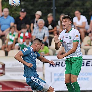 Piłkarzom Mławianki nie udało się zatrzymać rozpędzonego beniaminka z Bełchatowa. Choć podopieczni Piotra Rzepka walczyli, to jednak większą liczba popełnionych błędów przesądziła o porażce. W ostatecznym rozrachunku okazali się gorsi o bramkę.Bełchatowianie mogą się pochwalić solidnym budżetem, dlatego w ich szeregach nie brakuje zawodników z ekstraklasową przeszłością jak Artur Golański, Łukasz Wroński czy też Bartłomiej Bartosiak. Dwaj ostatni występowali w szeregach bełchatowskiej drużyny, kiedy ta walczyła jeszcze na najwyższym poziomie rozgrywkowym w kraju.Teraz próbują się przedostać ponownie na poziom centralny. Lepiej zaczęli wczorajszy bój od mławian, w szeregach których zadebiutował nowy pomocnik Adam Stefański (Jakub Tworek leczy nadal uraz barku). Mogli wyjść na prowadzenie, ale na szczęście piłka po strzale Wrońskiego przeszła obok słupka.Gospodarze odpowiedzieli szybko, po zagraniu od Michała Pragacza na czystą pozycję wybiegł Mateusz Karol. Przed sobą miał już tylko bramkarz, ale mocno naciskany, oddał szybki strzał. W efekcie Leonid Otczenaszenko zatrzymał próbę naszego napastnika. Potem próbowali jeszcze uderzać Stefański, Masalov, a mocna "bomba" Joao Odillona z woleja przeszła po rękach bramkarza nad poprzeczką..Niewykorzystane sytuacje zemściły się szybko. W 29. minucie Przemysław Zdybowicz otrzymał dokładne prostopadłe podanie od jednego z kolegów. Przed sobą miał już tylko Mateusza Kolińskiego. Przymierzył celnie, idealnie w długi róg.Obroniony karnyGoście mogli schodzić do szatni nawet z dwubramkowym prowadzeniem. Piotr Karwowski sfaulował w polu karnym jednego z przeciwników. Arbiter wskazał na "wapno" - Koliński wyczuł intencję strzelca, w efekcie wybronił w kapitalnym stylu uderzenie Wrońskiego.Niestety to tylko odwlekło stratę drugiego gola przez Mławiankę. Ten moment nastąpił ostatecznie w 48. minucie. Bartosiak przedostał się lewym skrzydłem w pole karne, po czym mocnym uderzeniem przełamał dłonie naszego bramkarza.Skuteczna pogońNa szczęście mławianie nie zamierzali się poddawać. Szybko zaliczyli kontaktowe trafienie - po rzucie wolnym Stefański zagrał piłkę w pole karne, a tam rezerwowy Łukasz Szczerbowski wyskoczył wyżej od obrońcy GKS-u. Głową otworzył konto bramkowe naszego zespołu.Na tym nie koniec - w 60. minucie padło wyrównanie. Akcję zaczął Stefański, potem Oleksandr Masalov posłał kapitalną piłkę do Odillona. Ten w sytuacji sam na sam nie pomylił się. Bramkarz gości nie miał żadnych szans na skuteczną obronę.Okienko KarolaWydawało się, że zespół z Bełchatowa można nawet pokonać. Niestety zabrakło kolejnej skutecznej akcji, a reprezentanci GKS-u otrząsnęli się w końcu po chwilowym szoku. Po sprytnie rozegranym rzucie wolnym wyszli ponownie na prowadzenie. Na dodatek na tym nie koniec. W 84. minucie Serhij Napolov wykorzystał rzut karny.Mławian stać już było tylko zmniejszenie rozmiaru przegranej. W doliczonym czasie pięknym strzałem z rzutu wolnego idealnie w górny róg popisał się Mateusz Karol.Mławianka Mława - GKS Bełchatów 3:4 (0:1)