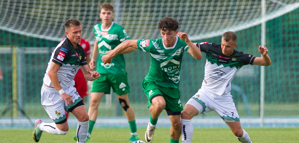 Mimo osłabień zespół z Mławy był bliższy odniesienia sukcesu. W pierwszym kwadransie Piotr Karwowski dopadł w polu karnym do zagrania Mateusza Stryjewskiego. Szybciej zareagował Jakub Tomkiel - w efekcie wygrał pojedynek z graczem Mławianki.Potem była jeszcze próba Stryjewskiego. Natomiast w 45. minucie "bombę" z dystansu odpalił Ivan Hurenko. Piłka przełamała dłonie Tomkiela. Niestety nie wpadła do siatki - na drodze stanęła poprzeczka.W drugiej połowie bramek nadal nie było. Od 72. minucie zawodnicy z Mławy musieli sobie radzić w dziesięciu. Drugą żółtą, a w konsekwencji czerwoną kartkę obejrzał Kacper Wojtyszyn.Już w osłabieniu Mławianka mogła, a nawet powinna zdobyć gola. Kolejny strzał z dystansu, tym razem z rzutu wolnego oddał Ivan Hurenko. Bramkarz GKS-u odbił strzał przed siebie, co pozwolił na dobitkę Maciejowi Kmiecikowi. Niestety nowy nabytek zielono-białych trafił tylko w poprzeczkę.Efekt był taki, że pojedynek zakończył bezbramkowym remisem. To mogło się jeszcze zmienić w doliczonym czasie. Na szczęście "główka" Jacka Bartosińskiego, obrońcy GKS-u Bełchatów przeszła obok słupka.Mławianka Mława - GKS Bełchatów 0:0