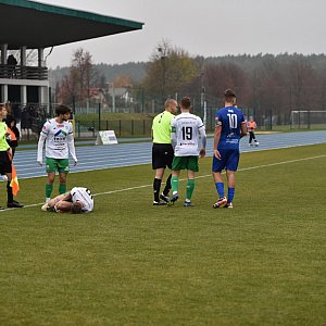 Podopieczni Bartosza Szczęsnego przystąpili do rywalizacji z Bronią Radom bez Ivana Hurenko. Kontuzja odniesiona w meczu z Lechią Tomaszów Mazowiecki okazała się poważna. Uraz kolana sprawia, że rosły defensor nie zagra już w tej rundzie jesiennej.Z konieczności trener zielono-białych zdecydował się na eksperymentalne ustawienie obrony. W takim zestawieniu personalnym jeszcze w tym sezonie nie wystąpiła. W premierowej odsłonie gra nie wyglądała dobrze - przybysze z Radomia stworzyli sobie parę okazji strzeleckich. Wykorzystali tylko jedną.Zdobyli gola bezpośrednio z dośrodkowania z rzutu rożnego. Ten element jest ćwiczony - w takich samych okolicznościach zdobyli gola w meczu piętnastej kolejki przeciwko GKS-owi Wikielec. W 8. minucie trafił do bramki Michał Wrześniewski. Zablokowany Kacper Jureczko zdołał tylko musnąć piłkę.Kolejny identycznych prób nie brakowało. Goście oddali także parę groźnych strzałów. Na szczęście bramkarz z Mławy nie zamierzał skapitulować po raz kolejny. Popisał się skutecznymi interwencjami.Nasi gracze także próbowali atakować - czasami zawodziło tzw. ostatnie podanie, dośrodkowania nie dochodziły do adresata. To się zmieniło się w końcówce premierowej partii. Uderzenie z rzutu wolnego Mateusza Stryjewskiego odbiło się od muru. Na szczęście piłka trafiła pod nogi Kacpra Zielskiego. Ten trafił w słupek, ale szansę na dobitkę otrzymał jeszcze Joao Odillon. Nasz napastnik doprowadził do wyrównania.W 65. minucie Mławianka strzelił gola. Wymianę składnych podań wykorzystał niezwykle aktywny w sobotnie popołudnie Zielski. Generalnie trzeba pochwalić wszystkich naszych zawodników. Zagrali z ogromną ambicją - m.in. Michał Stryjewski wytrzymał całe spotkanie, mimo kilkucentymetrowego, głębokiego rozcięcia na nodze (urazu doznał już w pierwszej minucie).Skromnego prowadzenia gospodarze już nie oddali. Na finiszu zmagań mogli jeszcze podwyższyć rozmiary wygranej. Jednak Kahsay Ezana przegrał pojedynek sam na sam z Jakubem Kosiorkiem.Mławianka Mława - Broń Radom 2:1 (1:1)