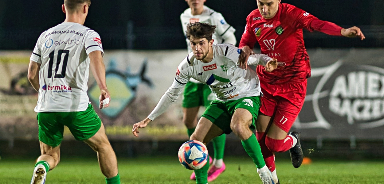 Wybryki kibiców na meczach piłkarskich bywają różne, ale nie przekraczają pewnych granic. Występujący na boisku zawodnicy są świętością. Owszem słownych zaczepek nie brakuje, ale nikt nie naruszał nietykalności cielesnej. To się zmieniło się w piątkowy wieczór w Wikielcu.W ramach ostatniej jesiennej kolejki futboliści Mławianki rywalizowali z tamtejszym GKS-em. Do 44. minuty toczyła się normalna, zacięta walka o ligowe punkty. Zważywszy na bliskość w ligowej tabeli, można nawet napisać o przysłowiowe "sześć oczek". W przypadku zwycięstwa gospodarze odskakiwali naszej drużynie. Natomiast w przypadku porażki zostaliby minięci w klasyfikacji generalnej przez podopiecznych Bartosza Szczęsnego.Pierwsza połowa nie przyniosła bramek. Więcej strzałów oddali gracze z Mazur. Dwoma kapitalnymi interwencjami popisał się Kacper Jureczko. Wydawało się, że obie drużyny wkroczą spokojnie do szatni z bezbramkowym wynikiem. To się zmieniło parę chwil przed końcem premierowej partii.Mławianie próbowali wyprowadzić kontrakt, co skończyło się faulem na szarżującym Michale Stryjewskim. Rywal otrzymał żółtka kartkę, a naszym pomocniku skupiła się złość miejscowych kibiców (miał rzekomo symulować). Na tym się nie skończyło. Gdy Adam Stefański sięgał po piłkę przy ogrodzeniu (wyjątkowo niskim) został uderzony pięścią przez jednego fanów, ubranego w czapkę i szalik GKS-u.Drugiej połowy nie byłoTen po całej akcji wrócił spokojnie na trybuny, przez nikogo nie niepokojony. Dopiero stanowcza reakcja naszych zawodników (Joao Odillon i Hubert Derlatka chcieli go gonić nawet na trybunach) sprawiła, że salwował się ucieczką z stadionu. Został zatrzymany dopiero przez policjantów.W takiej sytuacji mławianie nie chcieli już grać. Nie czuli się bezpiecznie , co oznajmili pani sędzi Ewie Augustyn. Ruszyli zdecydowanym krokiem do szatni. Tam postanowili, że nie wracają na murawę. Rozcięta warga, zakrwawiona koszulka Stefańskiego nie zachęcała do gry.Oczywiście gospodarze chcieli rozgrywać dalej pojedynek. Dalsze kontynuowanie meczu zatarłoby bowiem wydarzenie z 44. minuty. Narady trwały blisko godzinę - policjanci spisali m.in. zeznania Stefańskiego.Ostatecznie pani sędzia podjęła decyzję o przerwaniu spotkania. Teraz o jego losach rozstrzygnie decyzja Wydziału Dyscypliny Polskiego Związku Piłki Nożnej. Wikielcowi grozi walkower, kara finansowa oraz zamknięcie obiektu dla kibiców. Choć nie wykluczone, że może dojść do powtórki. Werdykty związkowych władz bywają czasami zaskakujące - o równym traktowaniu kluby mogą zapomnieć.GKS Wikielec - Mławianka Mława 0:0 - mecz przerwany w 44 minucie