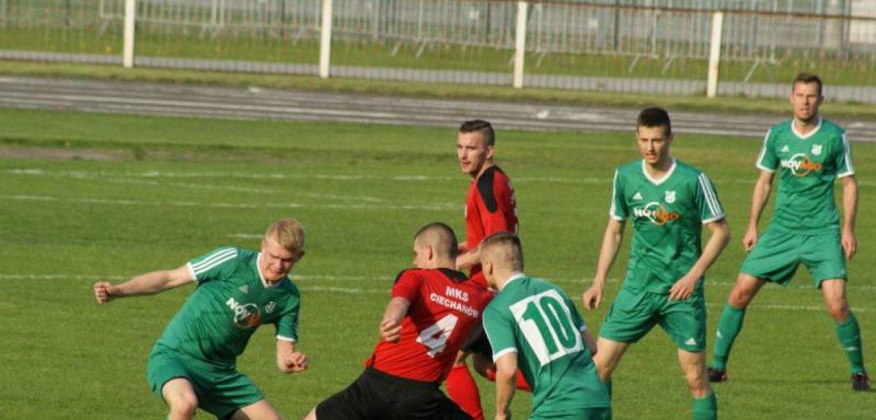O sukcesie piłkarzy Mławianki w derbach Północnego Mazowsza przesadził premierowy kwadrans. W ciągu piętnastu minut wyprowadzili dwa ciosy. Po nich konkurenci z Ciechanowa mieli problem z powrotem do równowagi.Podopieczni Zbigniewa Kaczmarka zaczęli strzelanie już po stu dwudziestu sekundach rywalizacji. Maciej Rogalski przedarł się lewym skrzydłem, po czym wyłożył idealnie piłkę Arkadiuszowi Kopruckiemu. Ten nie miał problemów z pokonaniem Rafała Olszewskiego.Kibice nie przestali jeszcze rozpatrywać jednego trafienia, a już w 14. minucie gospodarze dorzucili kolejne. Krystian Gosik popisał się kapitalnym zagraniem, a Piotr Melchinkiewicz odegrał do Marcina Tomczaka. Ten nie miał problemów z wpisaniem się na listę strzelców.W premierowej partii mławianie dominowali na całego. Zdobycz bramkowa mogła być znacznie okazalsza. Jednak Jakub Wróblewski strzelił nad poprzeczką po kolejnym świetny zagraniu Gosika, a uderzenie Michała Stryjewskiego obronił bramkarz Ciechanowa.Niestety w drugiej odsłonie mławianie zwolnili tempo - zaczęli wyraźnie odczuwać trudy pucharowej rywalizacji ze środka tygodnia. Rywale zaczęli coraz częściej zagrażać bramce strzeżonej przez Adriana Serowca. Ten obronił uderzenie Tomasza Kamińskiego, natomiast próba Patryka Tosika okazała się niecelna.W 72. minucie ciechanowianie cieszyli się w końcu z kontaktowej bramki - celnym strzałem popisał się Łukasz Barankiewicz. Na szczęście nie poszli za ciosem, wręcz przeciwnie, Tomczak wybił im na dobre z głów nadzieję na jakkolwiek zdobycz punktową. Najlepszy strzelec Mławianki w tym sezonie popisał się pięknym uderzeniem z dystansu. Piłka ugrzęzła w górnym rogu bramki.W następnym meczu ligowym Mławianka zmierzy się na wyjeździe z Bugiem WyszkówMKS Mławianka Mława - MKS Ciechanów 3:1 (2:0)