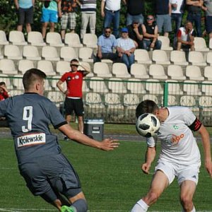 Piłkarze Mławianki nie przebili się do finału Pucharu Polski na szczeblu wojewódzkim. W środowe popołudnie nie dali rady rezerwom mistrza Polski, Legii Warszawa. Na pocieszenie pozostał gol zdobyty przez najbardziej doświadczonego zawodnika naszego zespołu, Macieja Rogalskiego.Faworytem byli warszawianie, w końcu na co dzień występują na poziomie trzeciej ligi. Jednak podopieczni Zbigniewa Kaczmarka nie przestraszyli się wyżej notowanego konkurenta. Już w pierwszej akcji mogli objąć prowadzenie - na listę strzelców mógł się wpisać Jakub Wróblewski. Zwlekał jednak zbyt długo z oddaniem strzału, w efekcie czego został zablokowany przez wracającego defensora.W 15. minucie Marcin Tomczak przymierzył z rzutu wolnego. Piłka minęła mur, ale zatrzymała się na poprzeczce. Ruszył do niej jeszcze Rogalski, ale przy próbie dobitki pocelował w słupek.Niewykorzystane okazje lubią się mścić - dośrodkowanie z prawej strony wylądowało na głowię Michała Górala, a ten nie miał litości dla Adriana Serowca. Na szczęście jeszcze przed przerwą mławianie doprowadzili do wyrównania. Wyjątkowo aktywny Rogalski wykorzystał precyzyjne dośrodkowanie z rzutu rożnego Marcina Tomczaka.Niestety w drugiej połowie więcej do powiedzenia mieli stołeczni zawodnicy. Nasz bramkarz zatrzymał parę groźnych uderzeń, raz po strzale Michała Karbownika w sukurs przyszedł mu słupek. Skapitulował dopiero w 77. minucie. Obronił strzał Amosa Shapiro-Thomsona, ale wobec dobitki Piotra Cichockiego okazał się bezradny.W sobotę 12 maja Mławianka zmierzy się na swoim boisku w meczu ligowym z Wisłą II Płock. Pierwszy gwizdek zabrzmi o godzinie 17.KS Mławianka Mława - Legia II Warszawa 1:2 (1:1)