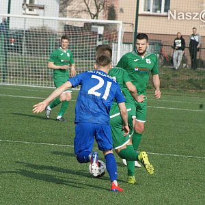 Po pierwszej połowie mławianie sprawiali lepsze wrażenie, niż faworyzowany Przasnysz. Niestety tuż po przerwie nastąpił dramat. W ciągu kwadransa podopieczni Adama Fedoruka pozwolili sobie wbić aż trzy bramki.Na dodatek wszystkie padły w identycznych okolicznościach. Dośrodkowania z prawej strony trafiały za każdym razem tuż przed pole karne, a tam do piłki dopadali po kolei Piotr Piasecki, Łukasz Kosiorek i Dominik Lemanek. Wszyscy nie dali żadnych szans Grzegorzowi Jabłonowskiemu na skuteczną interwencję.Nasz bramkarz skapitulował po raz pierwszy w 12. minucie. Lemanek przymierzył celnie z rzutu wolnego. Trochę pomógł mu mur - strojący w nim nasi gracze wyraźnie się rozstąpili. Jabłonowski nawet nie drgnął, piłka wylądowała w siatce.Mławianie otrząsnęli się w końcówce premierowej połowy. Do wyrównania doprowadził niezawodny Maciej Rogalski, sprytnie dobijając wcześniejszą próbę z dystansu w wykonaniu Łukasza Wróblewskiego.Na dodatek mogli pójść za ciosem. Po błędzie Karola Borowca, w sytuacji sam na sam z Michałem Przychodzkim znalazł się Marcin Tomczak. Kapitan Mławianki uderzył po ziemi, ale wprost w nogi bramkarza.Niestety kwadrans po przerwie wstrząsnął naszymi zawodnikami. Takiej straty nie dało się już odrobić, mimo że w końcówce szalał Rogalski. Skompletował hat-tricka, wykorzystując podania od Patryka Kostyka i Łukasza Wróblewskiego. Próbował także Jakub Wróblewski i przesunięty do przodu na finiszu batalii Łukasz Wodzyński. W przypadku pierwszego próba wymuszenia faulu w polu karnym skończyła się pokazaniem żółtej kartki. Natomiast rosły obrońca nie doszedł do żadnej okazji.W następnym meczu Mławianka zmierzy się na swoim boisku z MKS-em Ciechanów. Spotkanie zostanie rozegrane w sobotę 6 kwietnia, początek godz. 16.