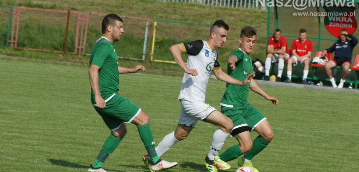 Nawet w najczarniejszych snach kibice Mławianki nie spodziewali się takiego przebiegu sobotniej rywalizacji w Żurominie. Podopieczni Adama Fedoruka byli tylko tłem dla beniaminka. Cztery stracone gole to najniższy z możliwych wymiarów kary.Grzegorz Jabłonowski musiał interweniować już w 2. minucie. Wyszedł zwycięsko z pojedynku sam na sam z Bartoszem Narewskim. Potem zatrzymał groźny strzał Szymona Masiaka. Jednak napór gospodarzy zrobił swoje. Dominik Stopczyński popisał się precyzyjnym uderzenie w długi róg.Minęło dwieście czterdzieści sekund, a nasi gracze przegrywali już różnicą dwóch bramek. Nikt nie pokrył w polu karnym Bartosza Żelaznego, a ten popisał się celną "główką".To otrzeźwiło zawodników z Mławy, niestety nie przyniosło żadnego celnego strzału. Wolej Patryka Kostyka poszybował nad poprzeczką, a strzał głową w wykonaniu Macieja Rogalskego przeszedł obok słupka.W 43. minucie był już w zasadzie po meczu. Żelazny kropnął mocno z rzutu wolnego. Piłka odbiła się od stojącego w murze Macieja Komorowskiego. To kompletnie zmyliło Jabłonowskiego, który po raz trzeci musiał wyjmować futbolówkę z siatki.Po przerwie obraz gry nie uległ zmianie. Mławianka zdołała oddać w końcu celny strzał., ale Marek Koczot nie miał problemów z zatrzymaniem Łukasza Wodzyńskiego. Za to miejscowi zdołali wyprowadzić kolejny cios. Bartosz Narewski przelobował naszego bramkarza.Na tym skończyły się emocje w derbach Ziemi Zawkrzeńskiej. Tym bardziej, że zespół z Mławy kończył mecz w osłabieniu. W 68. minucie czerwoną kartkę, w konsekwencji dwóch żółtych, obejrzał Adam Brzozowski.W następnym meczu Mławianka zmierzy się w sobotę 8 czerwca na swoim boisku z Kasztelanem Sierpc. Początek godz. 17.Wkra Żuromin - MKS Mławianka Mława 4:0 (3:0)