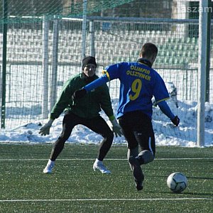 Beniaminek czwartej ligi warmińsko-mazurskiej Olimpia Olsztynek nie miał żadnych szans w zderzeniu z Mławianką. Gdyby podopieczni Macieja Śliwowskiego wykorzystali wszystkie okazje, mogło się skończyć nawet dwucyfrowym wynikiem. Ostatecznie piłka wpadła do bramki rywali siedmiokrotnie. Szkoleniowiec mławian wystawił w wyjściowym składzie aż trzech młodzieżowców. To ważne, bowiem w rundzie wiosennej do tego grona nie będzie można już zaliczać Jakuba Gąsiorowskiego i Patryka Piaseckiego. Po przerwie na sztucznej murawie pojawili się ponadto Jakub Tomczyk i Przemysława Cieślaka.Żaden z nich nie odstawał od starszych kolegów - na zmrożonym, w niektórych miejscach wyjątkowo śliskim, boisku walczyli z całych sił. Jednak strzelanie przypadło w udziale bardziej doświadczonym zawodnikom. Królem polowania okazał się Szymon Masiak. Podobnie jak w ligowym starciu przeciwko Łomiankom, wpisał się czterokrotnie na listę strzelców. Wywalczył ponadto rzut karny - skutecznym egzekutorem jedenastki okazał się Dominik Lemanek. Ponadto celnymi uderzeniami popisali się Michał Stryjewski i Marcin Tomczak.W kolejnym meczu kontrolnym w sobotę 13 lutego Mławianka zmierzy się z Lechem Rypinem.