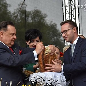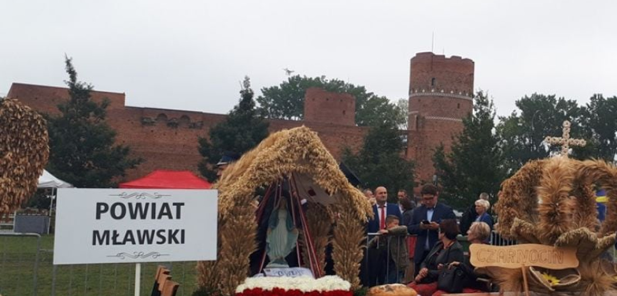 W sobotę (8 września) w Ciechanowie odbyły się Dożynki Województwa Mazowieckiego. Podczas imprezy nie zabrakło przedstawicieli powiatu mławskiego.Około godziny 11.00 na placu Jana Pawła II w Ciechanowie zaczęły ustawiać się delegacje dożynkowe. Mimo niesprzyjających warunków pogodowych, udało się uformować barwny korowód, który poprowadziła Miejska Orkiestra Dęta OSP Ciechanów i OSP Sochocin wraz z Ludowym Zespołem Artystycznym "Ciechanów". Na błoniach zamkowych odbyła się Msza Święta odprawiona przez ks. kan. Jana Jóźwiaka - dziekana dekanatu ciechanowskiego zachodniego, ks. Zbigniewa Adamkowskisgo dziekana dekanatu ciechanowskiego wschodniego oraz ks. prał. Eugeniusza Graczyka - dekanalnego ojca duchownego.Powiat Mławski reprezentował Jerzy Ryszard Rakowski - starosta mławski, Zbigniew Markiewicz - wicestarosta, Edyta Wild - sekretarz powiatu oraz czterdziestoosobowa delegacja. Tegoroczny wieniec dożynkowy wykonały Panie z Koła Gospodyń Wiejskich w Starej Otoczni "Na Szpilkach". Starostami dożynkowymi powiatu mławskiego byli Państwo Anna i Dawid Kwiatkowscy, którzy prowadzą gospodarstwo rolne w miejscowości Kowalewko, specjalizujące się w hodowli bydła mlecznego oraz trzody chlewnej. Wykonawcą chleba dożynkowego była Piekarnia - Cukiernia Szczepkowscy z Mławy.Drugi wieniec został przygotowany przez Koło Gospodyń Wiejskich w Czarnocinie w gminie Strzegowo.Na zakończenie uroczystej mszy świętej odbył się tradycyjny obrzęd dzielenia się nawzajem chlebem. Następnie ogłoszono wyniki konkursu na najpiękniejszy wieniec dożynkowy i nagrodzono zwycięzców. Goście mogli skosztować specjałów kuchni mazowieckiej, przygotowanych przez koła gospodyń wiejskich z powiatu ciechanowskiego.Po części oficjalnej przyszedł czas na część artystyczną. Na scenie wystąpiły zespoły ludowe, Varius Manx oraz Ania Dąbrowska.