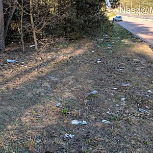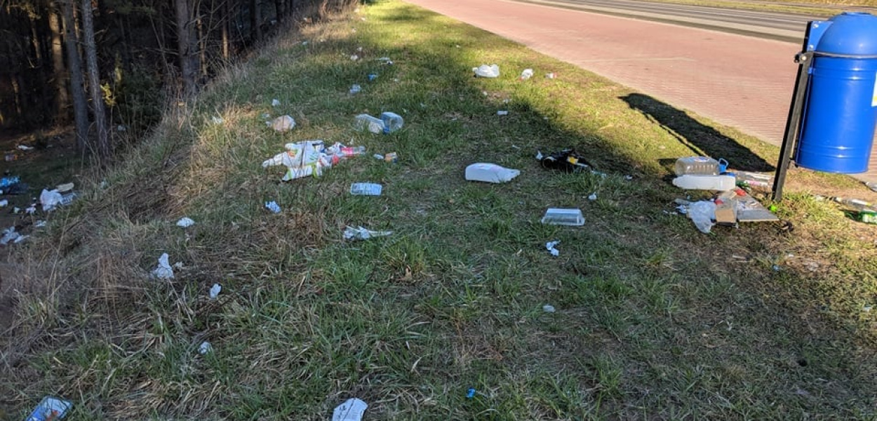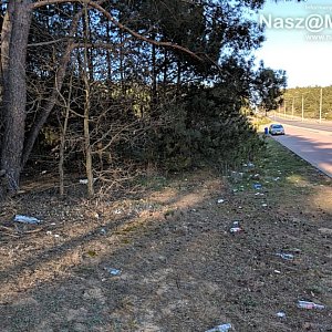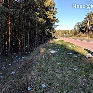 a może wina nieopróżnianych na czas koszy na śmieci. Jeśli w centrum miasta (tuż pod bokiem burmistrza) zdarzają się takie sytuacje, to na peryferiach miasta zapewne jest to nagminne zjawisko, ale to tylko częściowe wytłumaczenie takiego stanu pobocza.