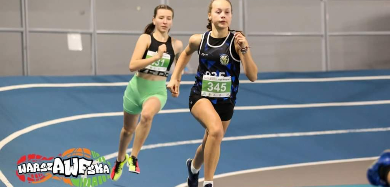 Tym razem wśród podopiecznych Adama Szymańskiego i Krzysztofa Koziatka przebił się do grona mulitimedalistów Jakub Adamski. Urodzony w roku 2004 rok biegacz wywalczył podczas dziewiątej, przedostatniej rundy ligi w tym roku srebro zarówno na 60 jak i 300 metrów. Dodatkowo na dłuższym dystansie ustalił nową "życiówkę".Blisko podwójnej zdobyczy była także Zofia Majko (rocznik 2009). Do czwartej pozycji w sprincie na 60 metrów dołożyła drugą na 600 metrów. Po razie na podium przedarli się Kacper Górski (rocznik 2014 - brąz na 60 metrów), Franciszek Bucholski (rocznik 2013 - srebro na 60 metrów), Michalina Krajewska (rocznik 2011 - brąz na 600 metrów), Oliwier Nowakowski (rocznik 2011 - brąz na 600 metrów), Antonina Karol (rocznik 2010 - brąz na 60 metrów), Aleksandra Szykowska rocznik 2009 - srebro na 60 metrów), Oliwia Agaszewska (rocznik 2009 - brąz na 60 metrów), Natalia Sobotka (rocznik 2009 - brąz na 600 metrów) oraz Nikolas Orłowski (rocznik 2009 - brąz na 60 metrów).Pozostali nasi lekkoatleci uplasowali się podczas zawodów na obiekcie AWF-u Warszawa na następujących lokatach:Zofia Wrotna (rocznik 2015) - 7 miejsce na 60 metrów i 8 miejsce na 300 metrów