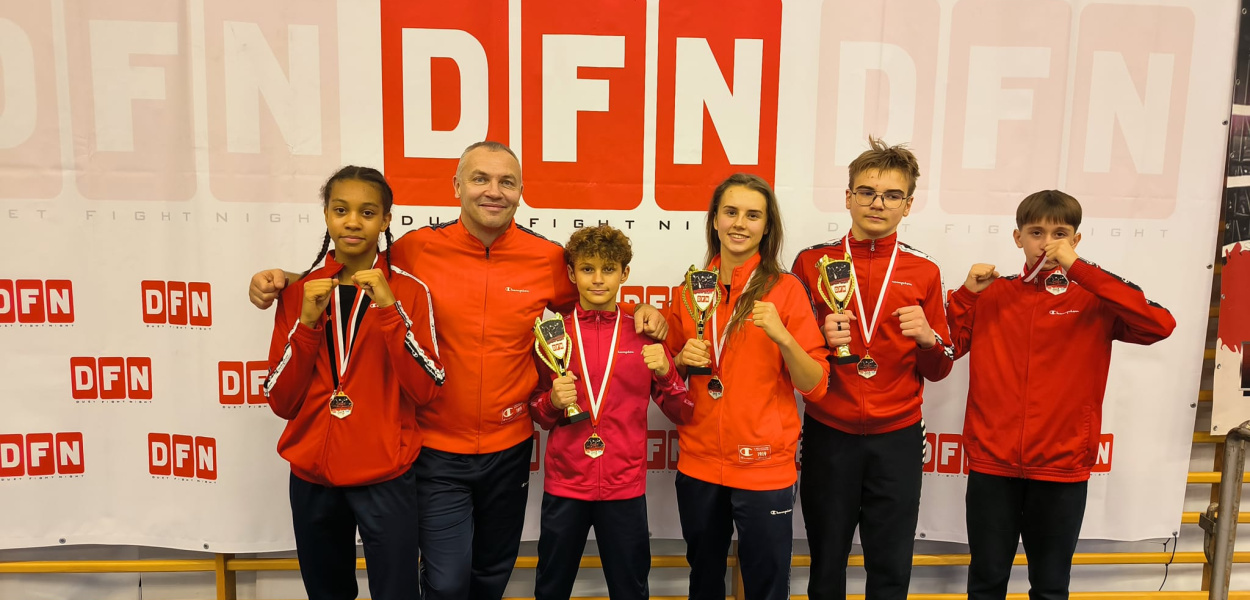 W pierwszy weekend grudnia mławscy kickbokserzy wybrali się w daleką podróż, na północną granicę naszego kraju. Położone w gminie Bartoszyce Bezledy były gospodarzem turnieju o puchar DFN. Bilans naszych reprezentantów to aż dziewięć zdobytych medali.W K1 walczyli podopieczni Łukasza Wróblewskiego (Studio Treningu Kickboxing Wróblewski Mława). Najlepiej w tym stylu poszło Fabianowi Wtulichowi. W kategorii junior starszy (waga -67 kg) cieszył się ze srebra. Nie dał rady jedynie pokonać Marka Piekarskiego z Gdańska.Z kolei po brąz w K1 sięgnęli Krystian Wąsiak i Nazarii Yaremchuk. Pierwszy z wojowników walczył w kategorii junior młodszy (kat. wag. -63,5 kg), natomiast drugi w seniorach (kat. wag. -60 kg).W kick-light trzymaliśmy kciuki za pięcioro młodych mławian. Wszyscy przedarli się na podium, także najmłodsza w tym gronie Aleksandra Wróblewska. Kadetka młodsza (kat wag. - 42 kg) sięgnęła po brąz.Nie próżnowali także zawodnicy trenowani przez Mirosława Karwińskiego. Brąz zdobyła Patrycja Ćwiklińska (kadet starszy kat. wag. - 50 kg), a srebro Aleksander Kuczalski (kadet starszy kat. wag. - 42 kg), Natomiast Puchar DFN stał się własnością Gabriela Goliana (kadet młodszy kat wag. - 37 kg), Olafa Subocza (kadet starszy - kat. wag. - 57 kg) oraz Aleksandry Żuchowskiej (junior - kat. wag. - 55 kg).