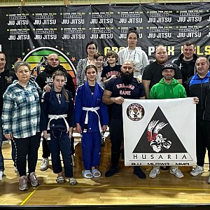 Pierwszy weekend marca przyniósł duży sukces reprezentantów Husarii w ogólnopolskich zawodach. Podczas imprezy z cyklu Grand Prix w brazylijskim jiu-jitsu przywieźli prawdziwy worek medali. Nie zabrakło złota, srebra oraz brązu.W Mińsku Mazowieckim pojawili się w składzie naszego klubu zarówno weterani jak i debiutanci. Tych ostatnich reprezentował Aleks Jaroszewski. Rywalizował w kategorii początkujący (kat wag. +38 kg). Na podium się nie wdrapał, podobnie jak i Patryk Miecznikowski (addult, biały -70 kg). Obaj zebrali tak potrzebne doświadczenie, które z pewnością zaprocentuje w przyszłości.Pozostali mławianie przebili się już do strefy medalowej. Roksana Wodzyńska nie miała sobie równych w kategorii addult; biały: -69 kg. W drodze po pierwsze miejsce pokonała kolejno Aleksandrę Langiewicz oraz Zofię Wiącek. Oba pojedynki wygrała na punkty.Po złoto sięgnęli także Bogdan Wróblewski (kat. maters4; czarny; -70 kg), Maciej Malinowski oraz Jakub Orłowski. Dwaj ostatni wojownicy podążyli identycznym szlakiem na szczyt. Pokonali po trzech konkurentów - walczyli odpowiednio w kategoriach addult; biały; 88,3 kg oraz addult; biały +100,5 kg.Ze srebra cieszył się Daniel Półtorak (master; biały; -94,3 kg). Nie dał rady wygrać tylko jednego starcia. Musiał w nim wyższość Adama Puchalskiego. Natomiast brąz zawisł na szyi Zuzanny Karpińskiej (młodszy junior; początkujący; dziewczęta -55 kg).Fot: Husaria Mława