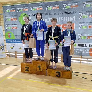 Pierwsza z wymienionych zawodniczek walczyła w kategorii wiekowej młodszy junior (początkujący, młodszy junior, kat. wag. - 55 kg). W drodze na szczyt pokonała dwie konkurentki. Półfinał przyniósł triumf na punkty z Julią Nowicką z Academią Shaka. Natomiast w decydującym starciu okazała się lepsza od Justyny Kołacz z Dragnons"Den/Ze Radiola Poland.Brąz zawisł na szyi Patrycji Błażejewskiej. W grupie wiekowej juniorki -56,5 kg poległa dopiero w starciu z Sylwią Welenc. Na pocieszenie przyszło trzecie miejsce i fakt, że przegrała w ostatecznym rozrachunku z późniejsza mistrzynią kraju (Welenc przegrała w finale z Weroniką Trzcińską).Brawa należą się również naszemu najmłodszemu wojownikowi Aleksowi Jaroszewskiego za start w turnieju. Na medal musi jeszcze poczekać, ale za swoją postawę zasłużył na ogromne owacje.Fot: Husaria Mława
