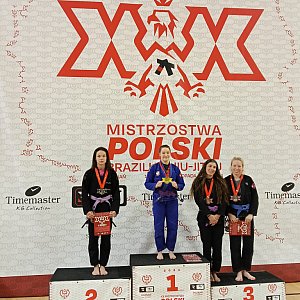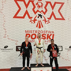 Uniwersytecka Hala w Poznaniu była areną tegorocznych mistrzostw Polski w brazylijskim jiu-jitsu. Czempionat okazał się niezwykle udany dla wojowników mławskiej Husarii. Dwóch z nich przedarło się na najwyższy stopień podium.W kategorii masters 4 (-70 kg) czarne pasy poza wszelką konkurencją pozostał Bogdan Wróblewski. W drodze na szczyt wygrał dwie walki. Zarówno Pawła Steczkowskiego (Poznań) jak i Brazylijczyka Claudio Perreirę da Silvę pokonał na punkty (2:1).Wyczyn Bogdana powtórzył jego młodszy kolega klubowy. Maciej Malinowski rywalizował w kategorii adult białe pasy (-88 kg). W pierwszej rundzie miał jeszcze wolny los. Rywal z ćwierćfinału został zdyskwalifowany. Półfinałowe zmagania przyniosły triumf na punkty nad Emilem Klemczyńskim. Z kolei w decydującym starciu mławianin okazał się lepszy od Brunona Urbaniaka z Poznania. Złoto to jedno - dodatkowo na podium z rąk Wróblewskiego otrzymał nominację na niebieski pas.Pozostali nasi medaliści sięgnęli po tytuły wicemistrzowskie. Robert Wodzyński wywalczył srebro w kategorii masters 4 +100 kg czarne pasy. W drodze po drugie miejsce pokonał m.in. w ćwierćfinale Kornela Zapadkę - pierwszego Polaka, który wygrał mistrzostwo Brazylii.Ten sam wyczyn stał się udziałem także Roksany Wodzyńskiej (kategorii -64 kg purpurowe pasy). Srebro wywalczyła po dwóch wygranych walkach, pokonując min. w ćwierćfinale bardzo mocną zawodniczkę z Berserkers Warszawa.Pozostali zawodnicy nie zdołali się przedrzeć do strefy medalowej. Wszyscy zasłużyli na ogromne oklaski. W stolicy Wielkopolski swoje umiejętności zaprezentowali jeszcze Igor Olko (adult, biały -70 kg), Jakub Orłowski (adult, biały +100, 5 kg), Patryk Rutyna (adult, niebieski -76 kg), Kacper Osiecki (adult, niebieski +100,5 kg), Michał Staniszewski (masters 1, biały -88, 3 kg) oraz Amelia Cichocka (młodszy junior, dziewczęta 52,5 kg).Fot: Husaria Mława
