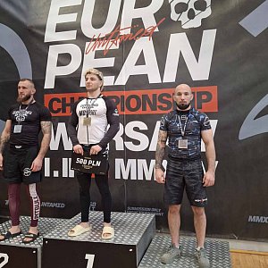 Radosne wiadomości napłynęły w miniony weekend z hali warszawskiej dzielnicy Włochy. Rozegrane na obiekcie tamtejszego Ośrodka Sportu i Rekreacji mistrzostwa Europy SOLT Submission Only League Tournament) okazały się niezwykle udane dla reprezentantów mławskiej Husarii.Formuła NO Gi (brazylijskie jiu-jitsu) to idealne pole dla Roberta Wodzyńskiego. W stolicy potwierdził swoją ogromną klasę. Zmagania w kategorii Masters Pro+95 kg przyniosły mławianinowi tytuł mistrza kontynentu. Dzięki dźwigni pokonał przed czasem w pierwszej rundzie Łukasza Matułajtisa. Natomiast w finale przeciwko Marcinowi Kulikowskiemu z Krakowa do wyłonienia zwycięzcy potrzebna była dogrywka. Końcowy werdykt był już po myśli mławianina.Na najwyższy stopień czempionatu przebił się także Mateusz Machnacki. Rywalizacja w kategorii adult, białe pasy 85 kg przyniosła mnóstwo emocji. W drodze na szczyt wojownik z Mławy wygrał aż pięć walk. Sposoby na zakończenie pojedynków wybierał różne - duszenie, triumf na punkty po dogrywce, kimura, dźwignia, a w finale wygrana 2:0 nad Michałem Emilijanowiczem.To nie koniec medalowego dorobku naszych wojowników. Adrian Juszczyk sięgnął po brąz (addult, Pro 85 kg), z kolei na szyi Amelii Cichockiej zawisło srebro (junior młodszy, kat 52 kg).W Warszawie swoje umiejętności zaprezentowali także Kacper Bartnicki, Mateusz Jankowski, Zuzanna Karpińska, Oskar Paliński, Jakub Orłowski oraz Patryk Rutyna.Fot: Husaria Mława