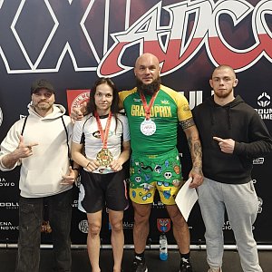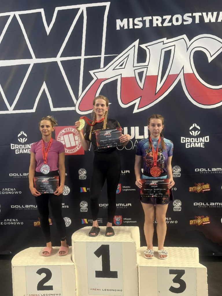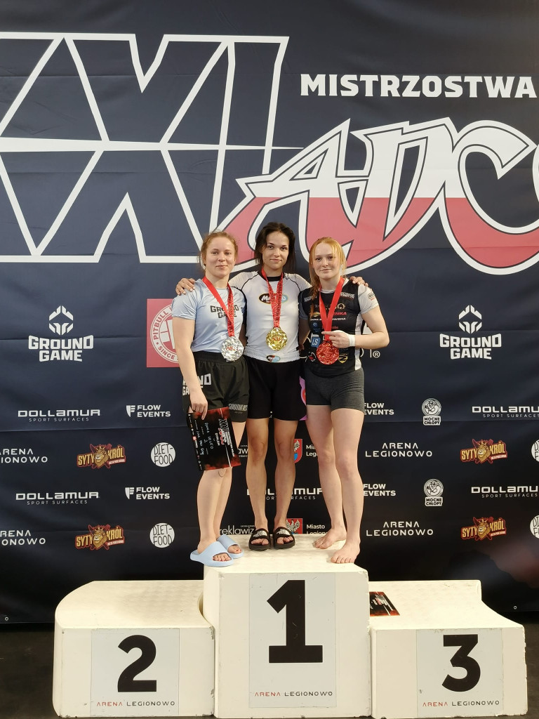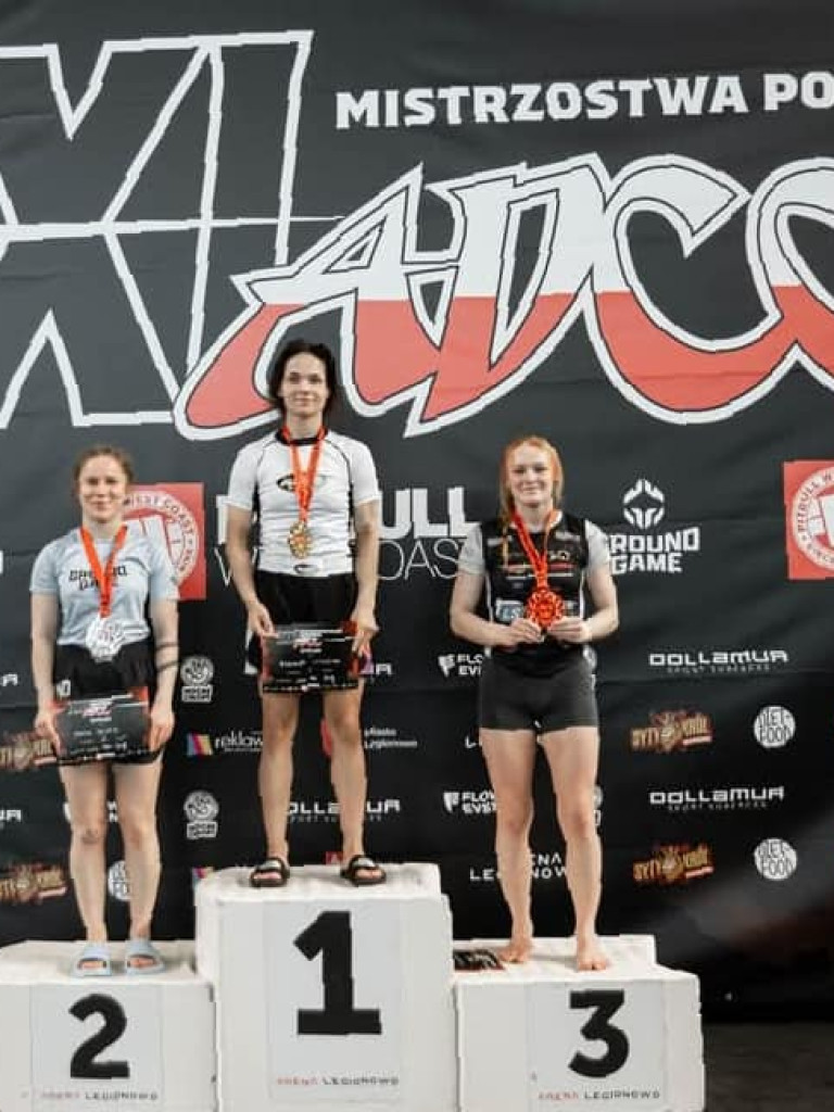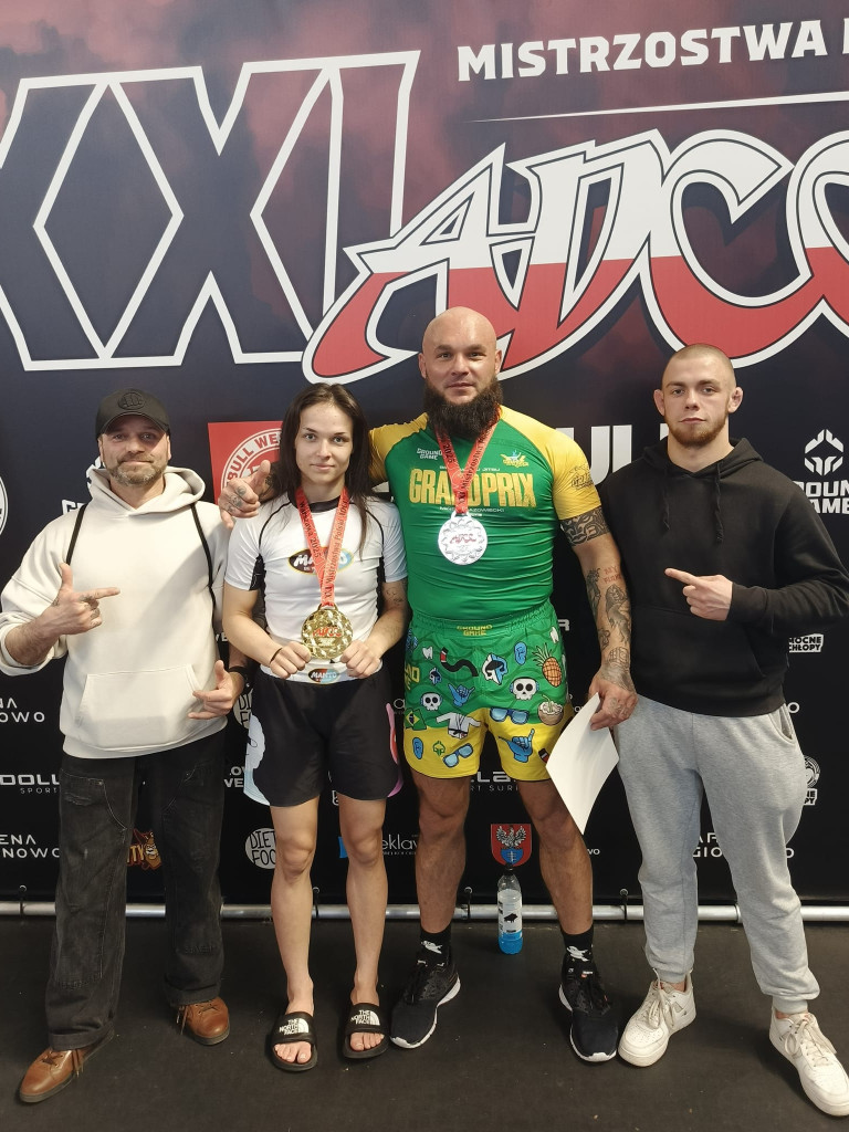 Miniony weekend okazał się wyjątkowo udany dla wojowników mławskiej Husarii. Na hali w Legionowie sięgnęli po trzy medale mistrzostw Polski ADCC. Najwięcej powodów do radości miała Roksana Wodzyńska. W kapitalnym stylu wywalczyła złoty medal.Dwudniowy czempionat zgromadził na starcie najlepszych grapplerów z całego kraju. Wszystkich łączyła chęć występu na prestiżowej imprezie - zmierzenia się z całą krajową czołówką. Choć niektórzy wybiegali myślami znacznie dalej - marzyli o sukcesach. W tym gronie byli także nasi zawodnicy.W premierowej rundzie Wodzyńska (kat. PRO -60 kg) miała jeszcze wolny los. Potem przyszło już walczyć. Półfinał z Darią Brzozowską z Bydgoszczy przyniósł wygraną przed czasem (za sprawą bałachy na kolano). Finał stał się faktem - mławianka poradziła sobie z presją koncertowo. Dominowała od początku, co przyniosło efektowny triumf 9:1 nad Anną Lelito z Krakowa.O złoto otarł się także Robert Wodzyński (kat Pro +100,5 kg). Ostatecznie jednak musiał się zadowolić tytułem wicemistrza Polski. Decydujący pojedynek przyniósł zaciętą rywalizację z Łukaszem Budziewiczem z Bydgoszczy. Zwycięzcę wyłoniła dopiero dogrywka. Końcowy werdykt był korzystny dla grapplera z województwa kujawsko-pomorskiego.Na trzecim miejscu zakończyła zmagania Patrycja Błażejewska (kat. początkujący -55 kg). Po zwycięstwie nad Angeliką Marcinkowską drzwi do podium otworzyły się na oścież. Nasza reprezentantka wróciła do domem z brązem. Wyżej od niej uplasowały się jedynie Kinga Bąk z Warszawy, a przede wszystkim najlepsza w tej kategorii Angelika Marcinkowska z Piły.Pozostali nasi wojownicy musieli się zadowolić lokatami poza strefą medalową. Patryk Rutyna był piąty (kat. średniozaawansowany -76 kg). Kacper Bartnicki finiszował na dziewiątym miejscu (kat. junior 15-17 lat, -70 kg). Ten sam wynik powtórzył Mateusz Jankowski (kat. junior 15-17 lat, -80 kg).Fot: Husaria Mława