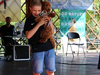Cześć i chwała bohaterom Powstania Warszawskiego! Mława PAMIĘTA! Przed pomnikiem papieża Jana Pawła II w Mławie zebrana się grupa osób,