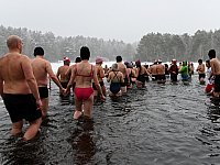 Uczniowie z Zespołu Szkół nr 4 w Mławie 21 stycznia przy blisko 6-stopniowym mrozie zorganizowali morsowanie na terenie "Brzozowej Wyspy"