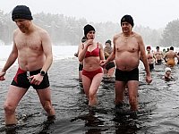Uczniowie z Zespołu Szkół nr 4 w Mławie 21 stycznia przy blisko 6-stopniowym mrozie zorganizowali morsowanie na terenie "Brzozowej Wyspy"